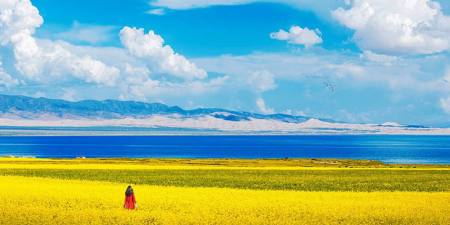 早6点自行前往青海湖边观日出,早餐后乘车前往中国重要的食盐产地-乌兰县茶卡镇参观天空之镜---茶卡盐湖,茶卡盐湖是固液并存的卤